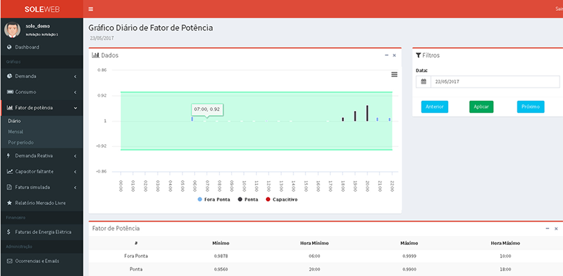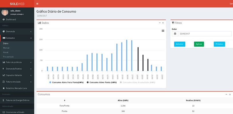 Acompanhamento diário do consumo de energia, com emissão de relatórios mensais e sistema de ocorrências nas unidades com monitoramento remoto;